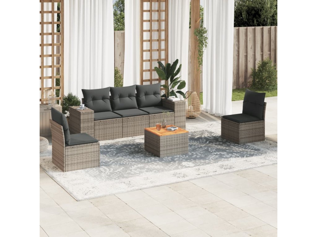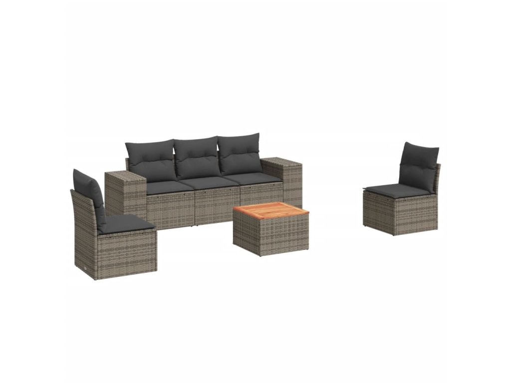 6dílná zahradní sedací souprava s poduškami šedá polyratan 3225388