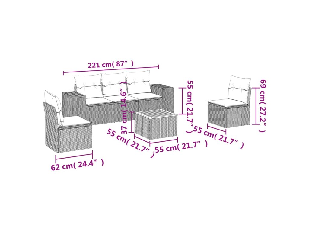 Tato zahradní sedací souprava je dokonalým doplňkem vaší zahrady, terasy nebo dvorku a poskytne vám pohodlné a příjemné místo, kde si můžete povídat s rodinou a přáteli nebo jen tak odpočívat a užívat si pobyt venku.