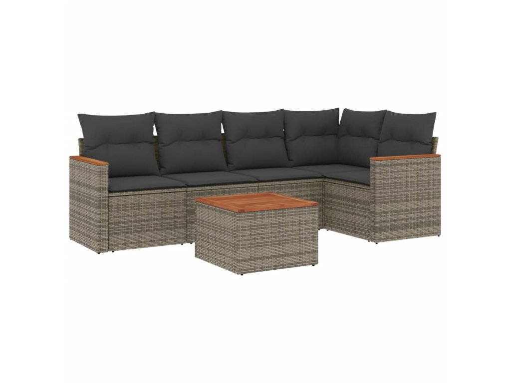 6dílná zahradní sedací souprava s poduškami šedá polyratan 3225955