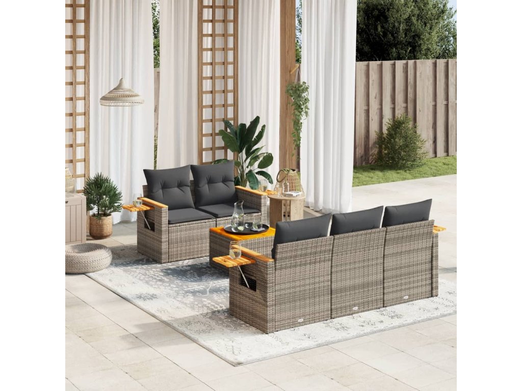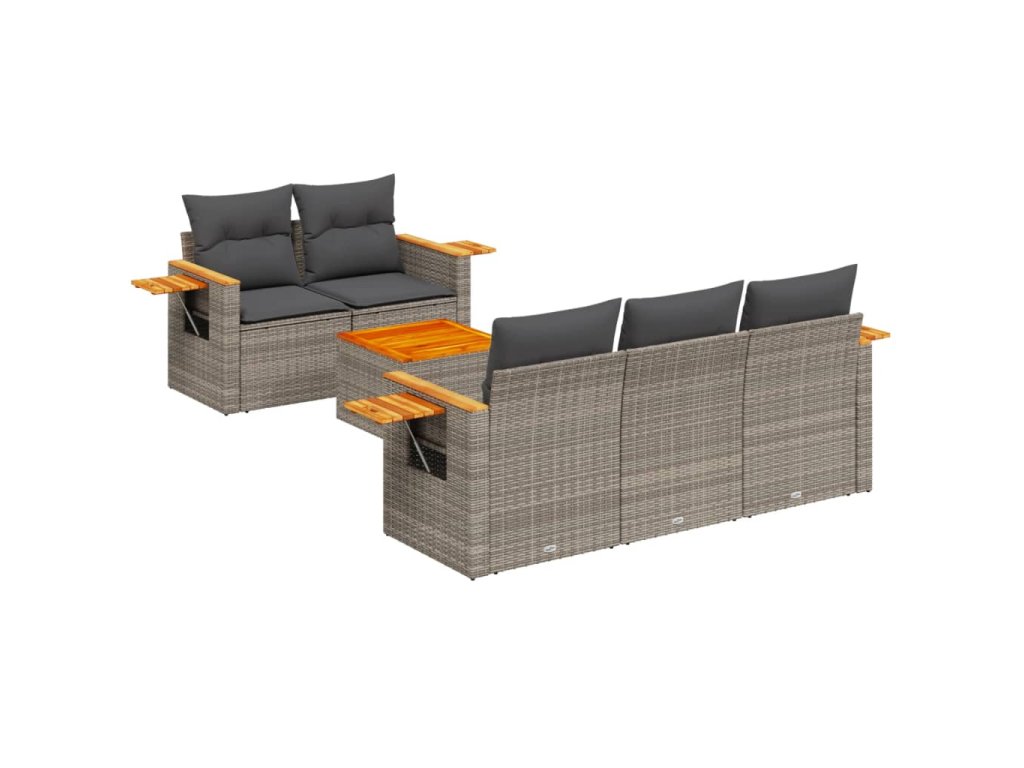 6dílná zahradní sedací souprava s poduškami šedá polyratan 3226627