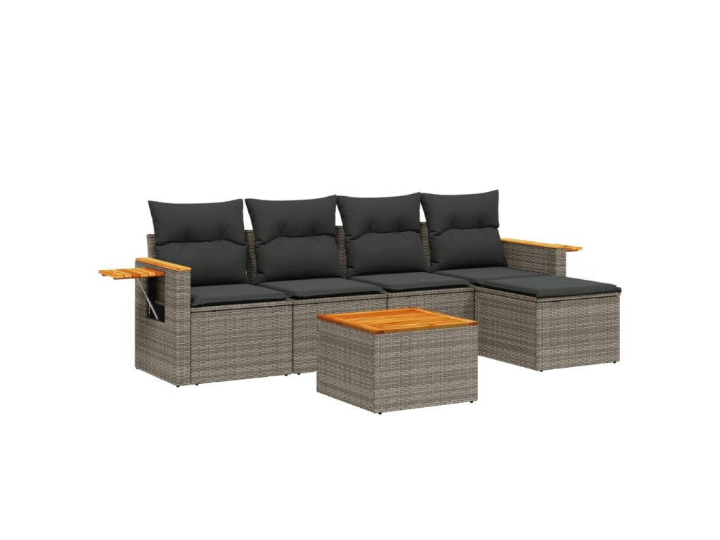 6dílná zahradní sedací souprava s poduškami šedá polyratan 3226767