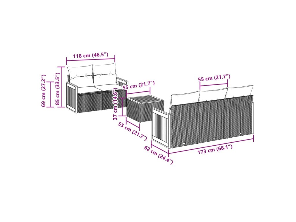 Tato zahradní sedací souprava je dokonalým doplňkem vaší zahrady, terasy nebo dvorku a poskytne vám pohodlné a příjemné místo, kde si můžete povídat s rodinou a přáteli nebo jen tak odpočívat a užívat si pobyt venku.