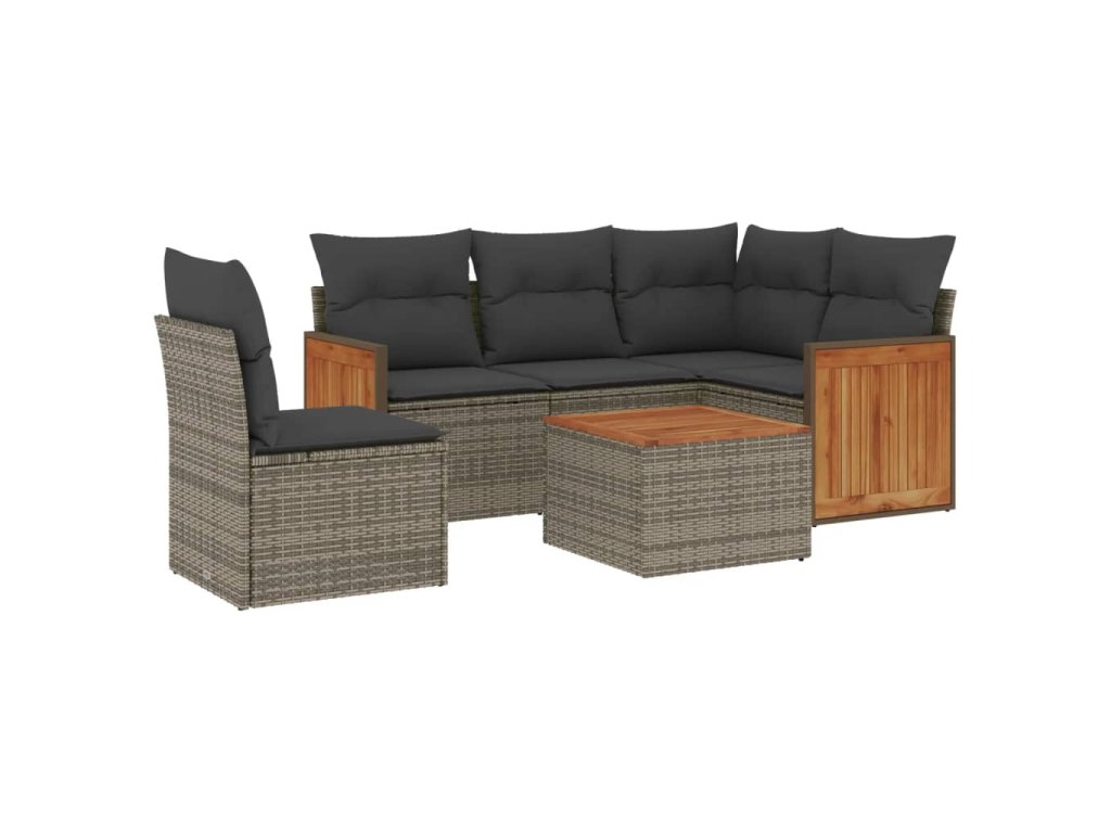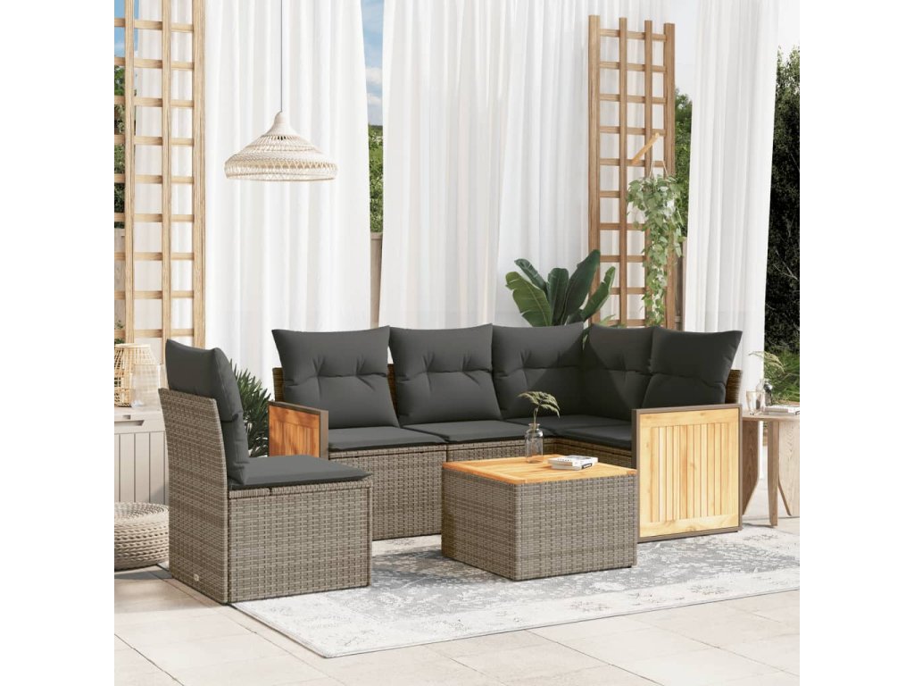 6dílná zahradní sedací souprava s poduškami šedá polyratan 3227663