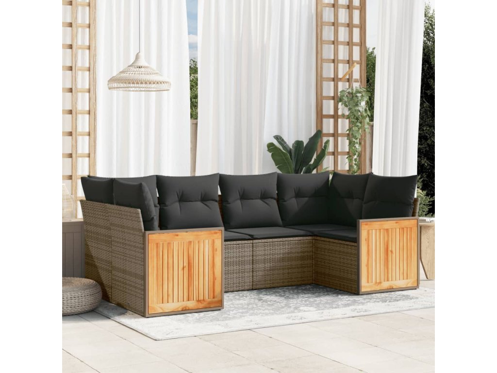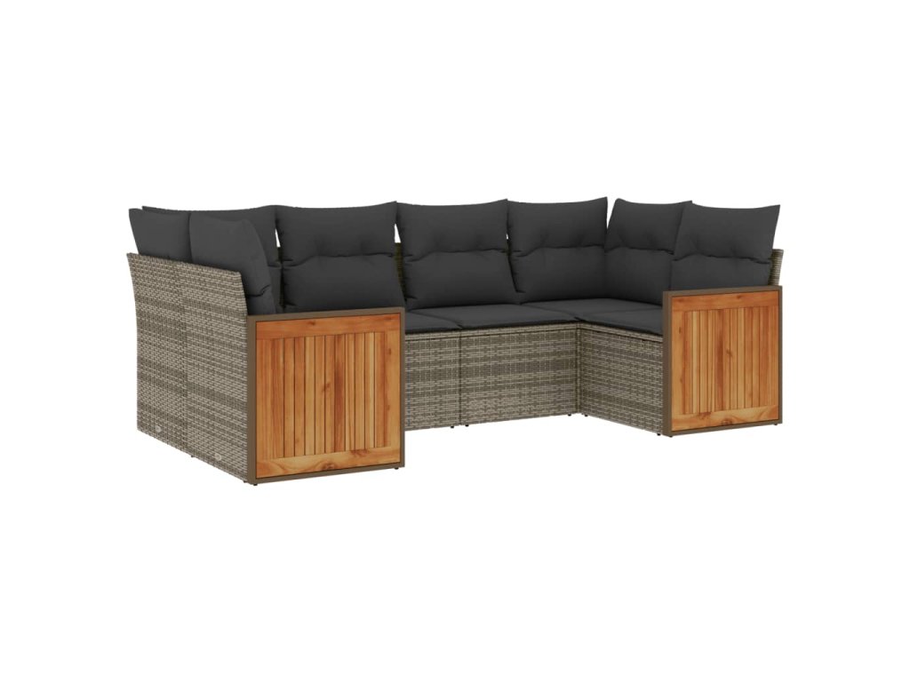 6dílná zahradní sedací souprava s poduškami šedá polyratan 3227943