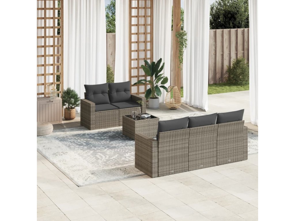 6dílná zahradní sedací souprava s poduškami šedá polyratan 3251037
