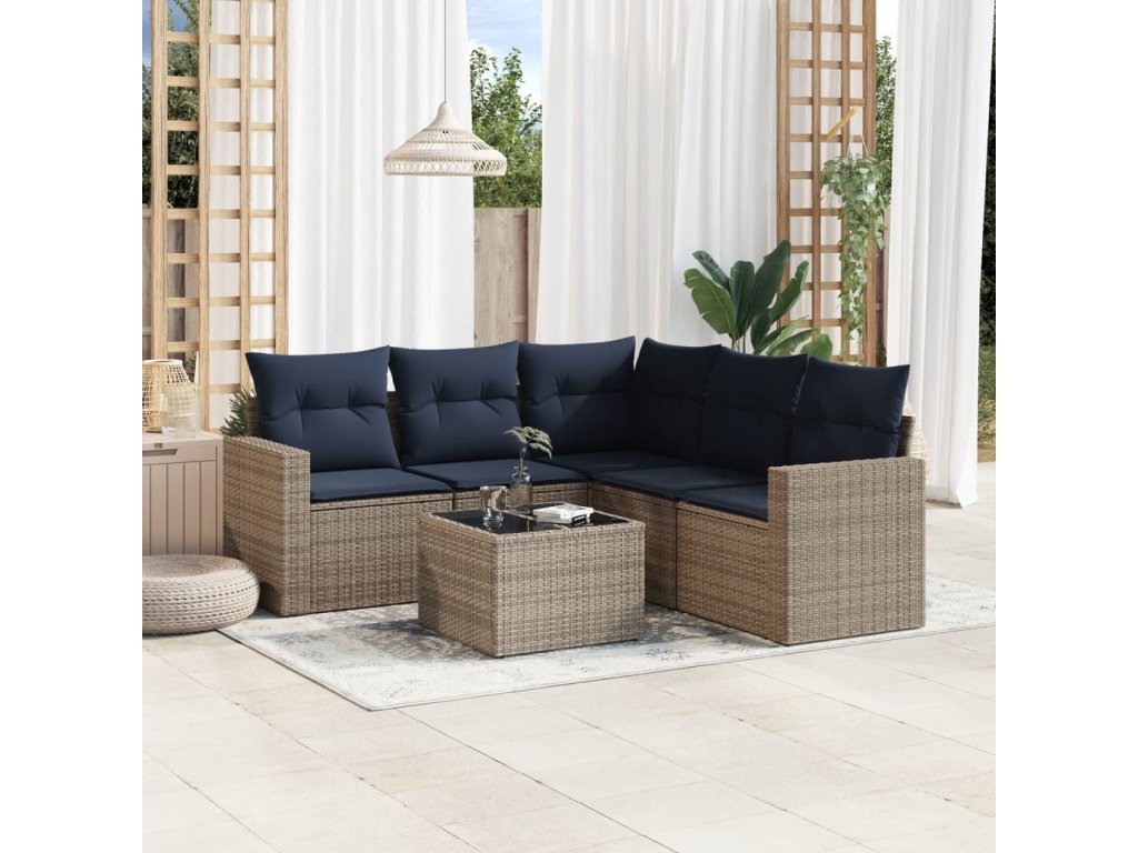 6dílná zahradní sedací souprava s poduškami šedá polyratan 3251298