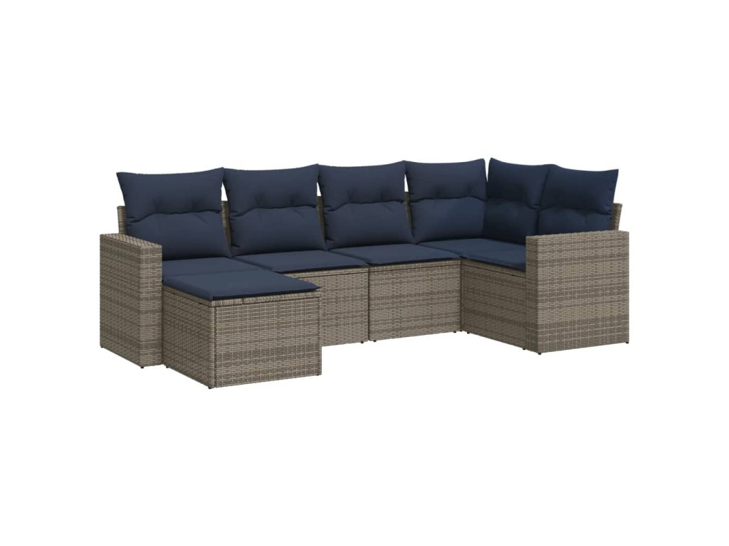 6dílná zahradní sedací souprava s poduškami šedá polyratan 3251598