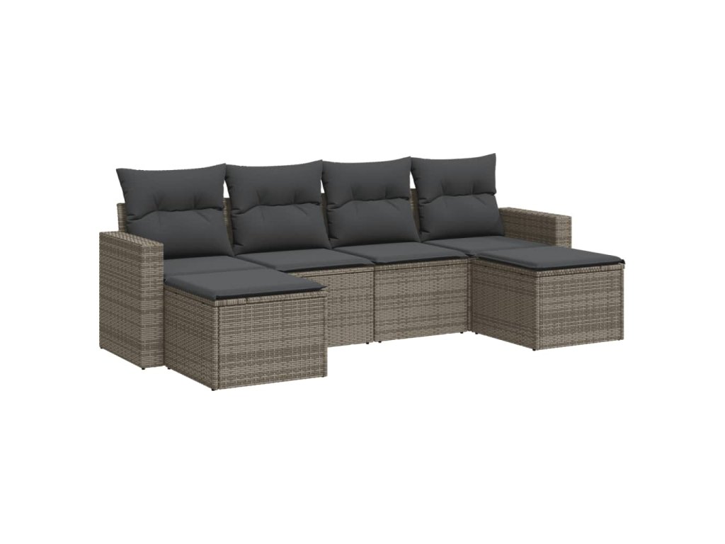 6dílná zahradní sedací souprava s poduškami šedá polyratan 3251657