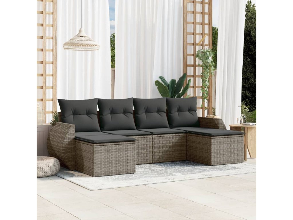 6dílná zahradní sedací souprava s poduškami šedá polyratan 3254057