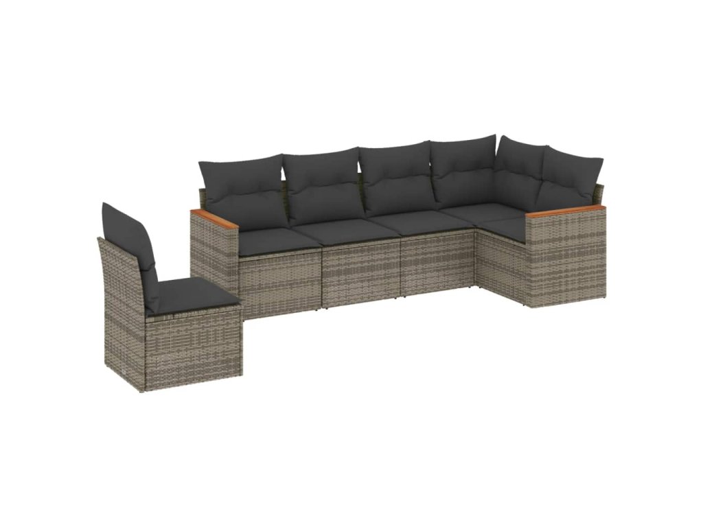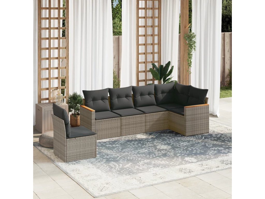 6dílná zahradní sedací souprava s poduškami šedá polyratan 3258420