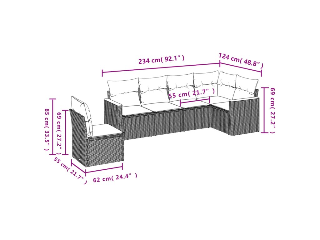 Tato zahradní sedací souprava je dokonalým doplňkem vaší zahrady, terasy nebo dvorku a poskytne vám pohodlné a příjemné místo, kde si můžete povídat s rodinou a přáteli nebo jen tak odpočívat a užívat si pobyt venku.