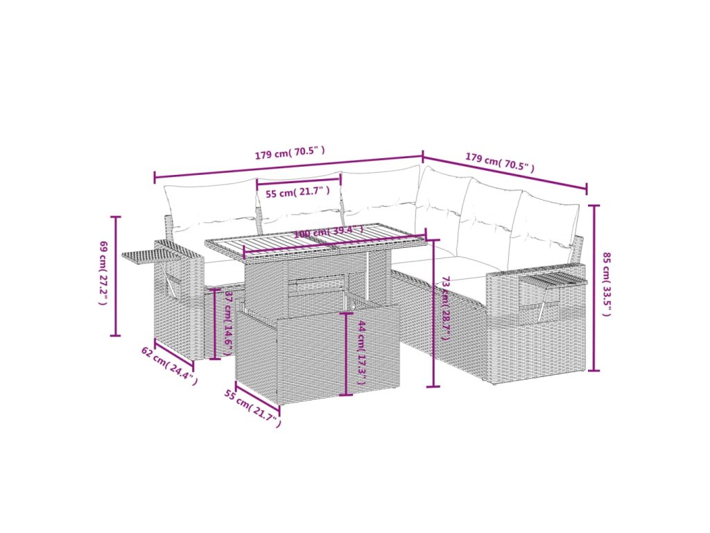 Tato zahradní sedací souprava je dokonalým doplňkem vaší zahrady, terasy nebo dvorku a poskytne vám pohodlné a příjemné místo, kde si můžete povídat s rodinou a přáteli nebo jen tak odpočívat a užívat si pobyt venku.