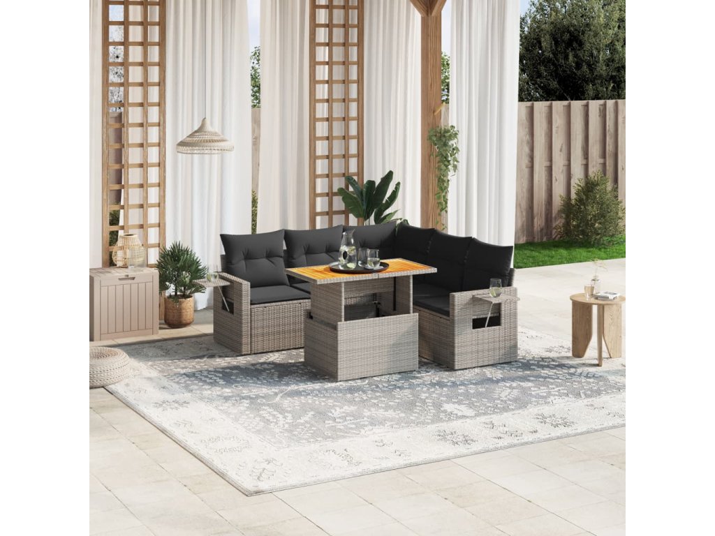 6dílná zahradní sedací souprava s poduškami šedá polyratan 3271753
