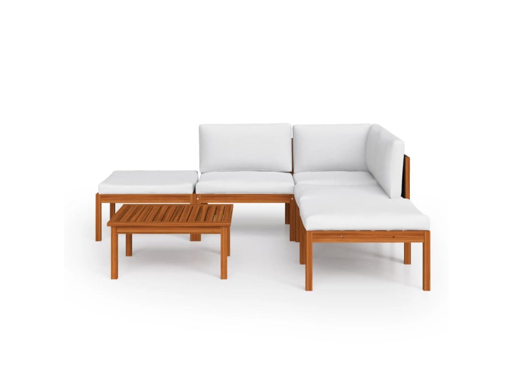 - Masivní akáciové dřevo: Masivní akáciové dřevo je krásný přírodní materiál. Akáciové dřevo je tropické tvrdé dřevo, které je husté, robustní a odolné. Rám sedací soupravy vyrobený z olejovaného akáciového dřeva je proto stabilní a snadno se udržuje.