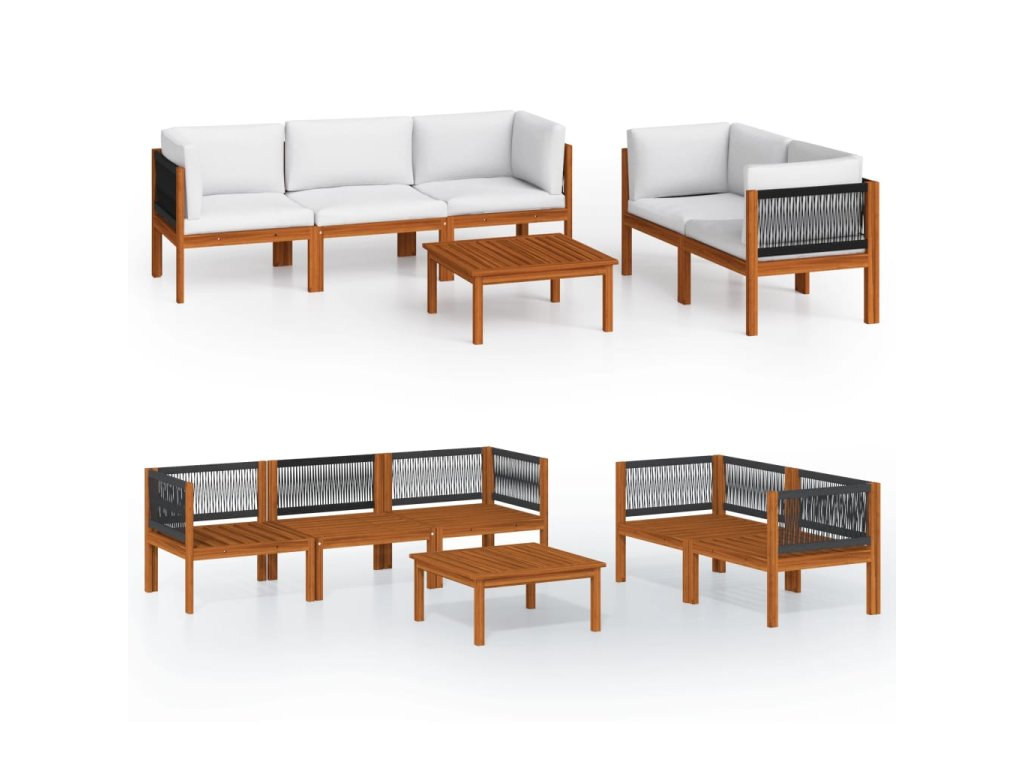 6dílná zahradní sedací souprava s polštáři krémové dřevo akácie a provaz 3057886