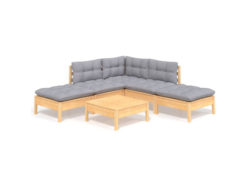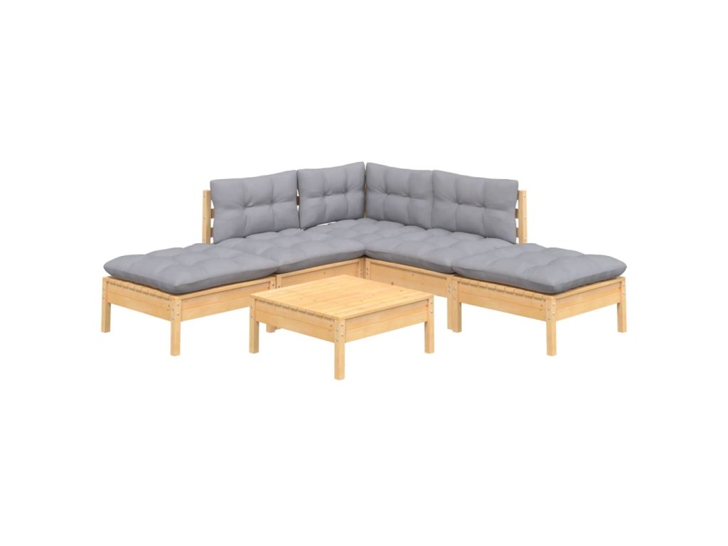 6dílná zahradní sedací souprava s šedými poduškami borovice 3096315