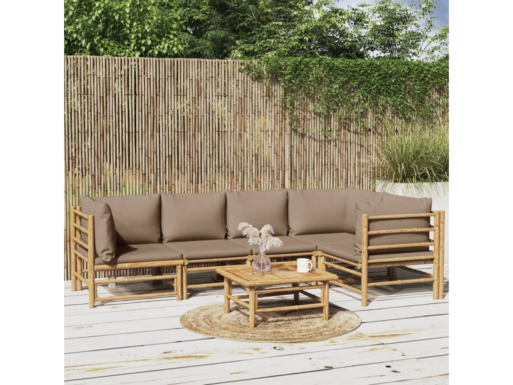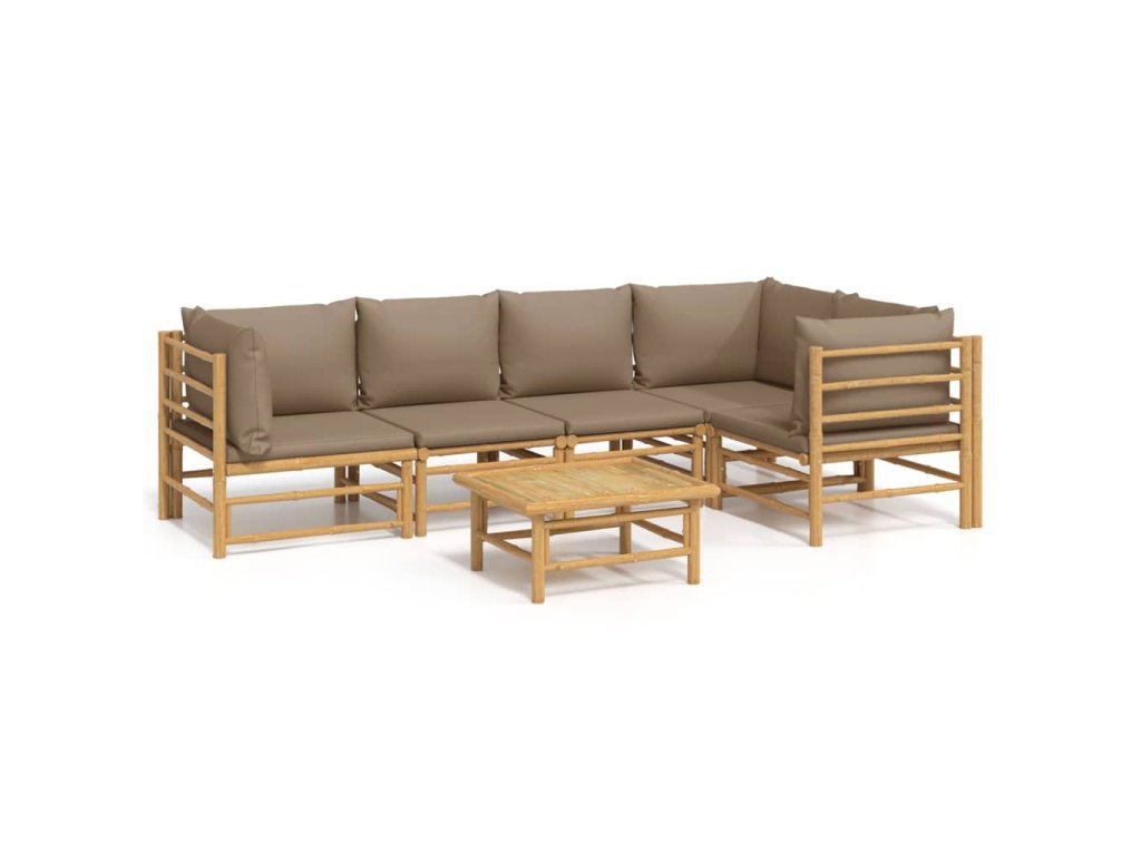 6dílná zahradní sedací souprava s taupe poduškami bambus 3155137