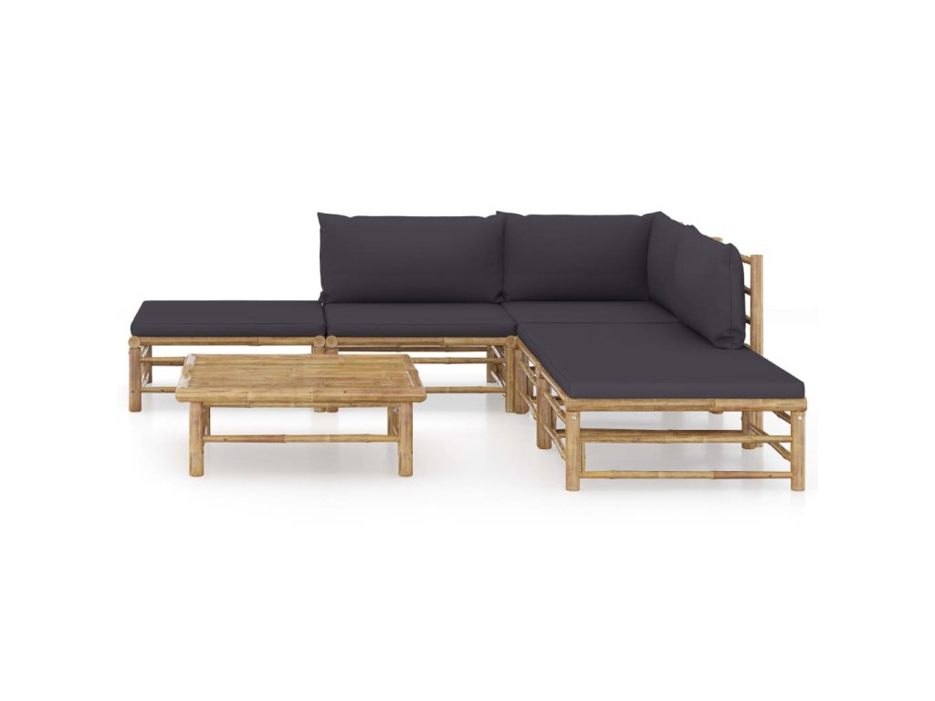 6dílná zahradní sedací souprava s tmavě šedými poduškami bambus 3058188