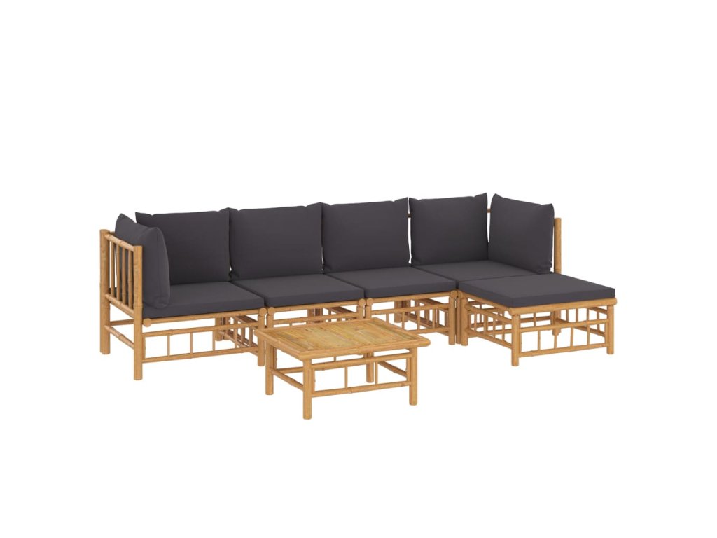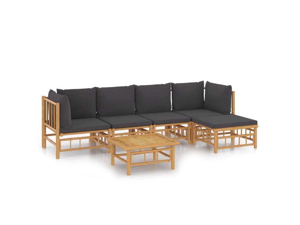 6dílná zahradní sedací souprava s tmavě šedými poduškami bambus 3155212