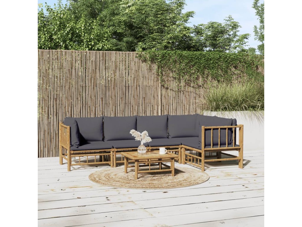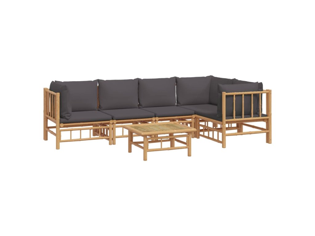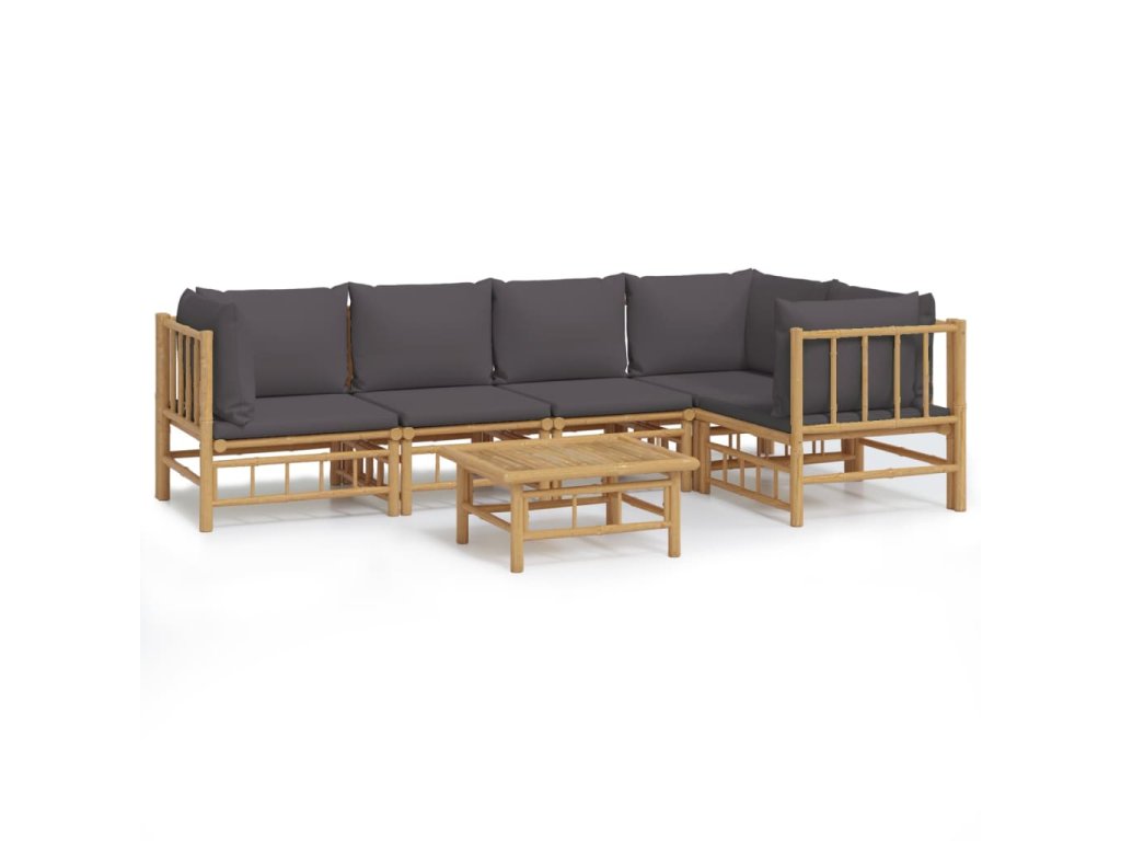 6dílná zahradní sedací souprava s tmavě šedými poduškami bambus 3155233
