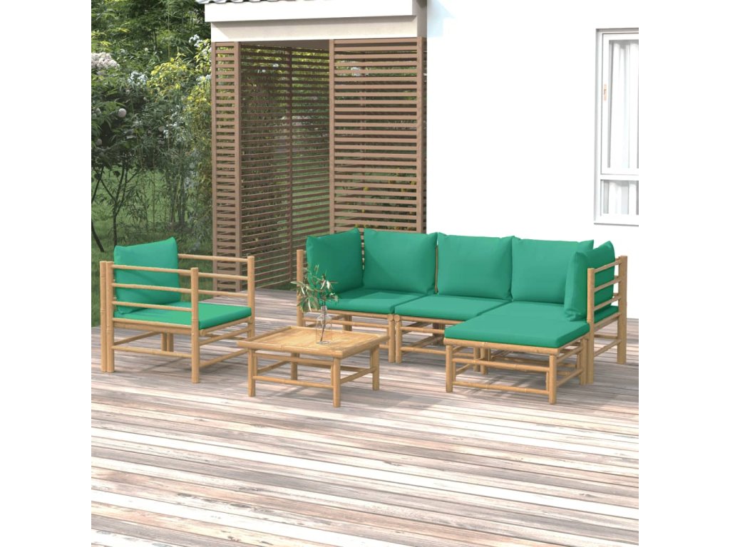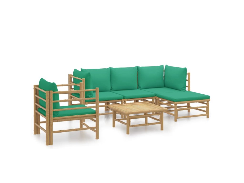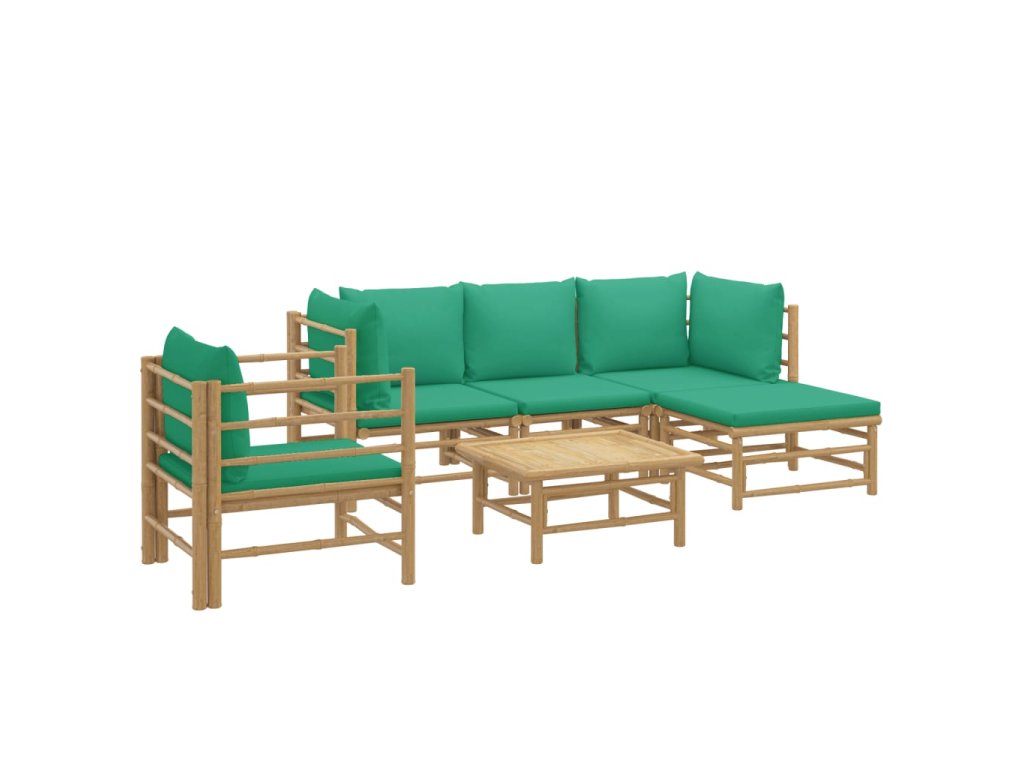 6dílná zahradní sedací souprava se zelenými poduškami bambus 3155147