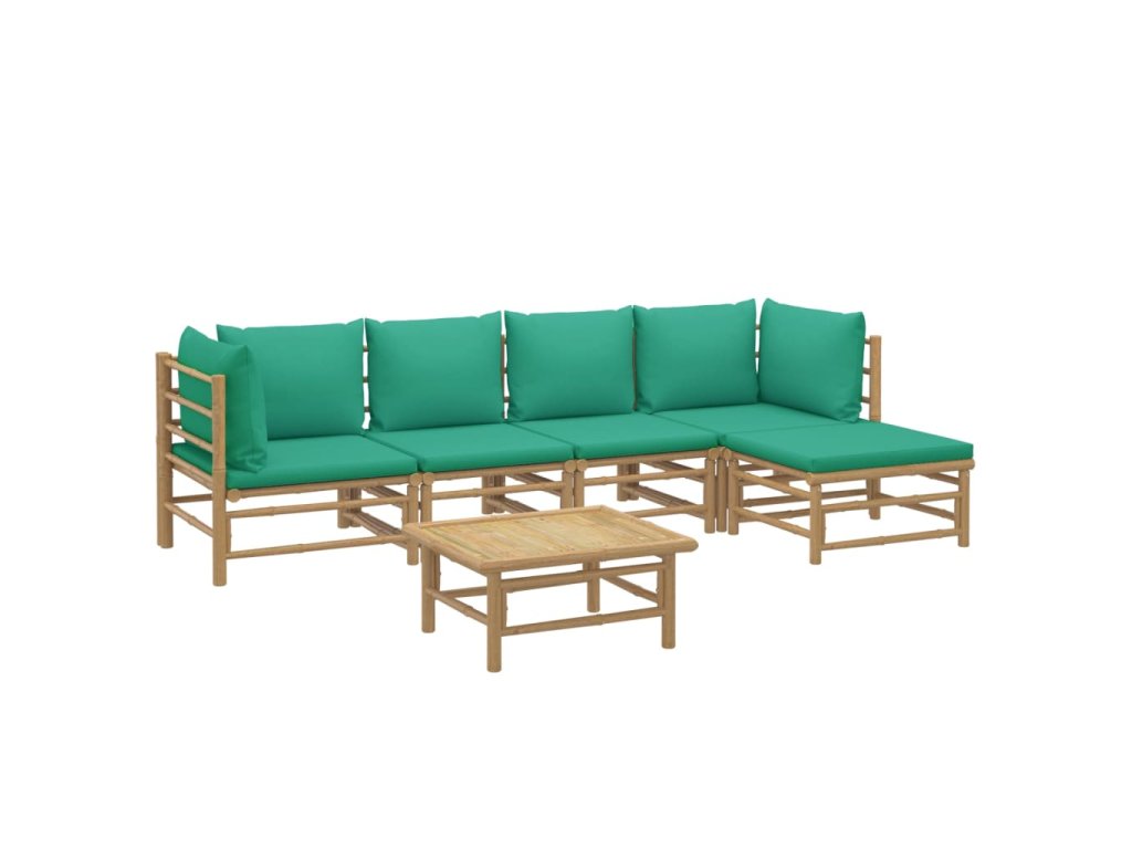 6dílná zahradní sedací souprava se zelenými poduškami bambus 3155148