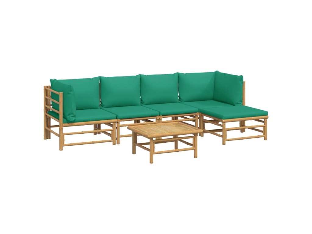 6dílná zahradní sedací souprava se zelenými poduškami bambus 3155168
