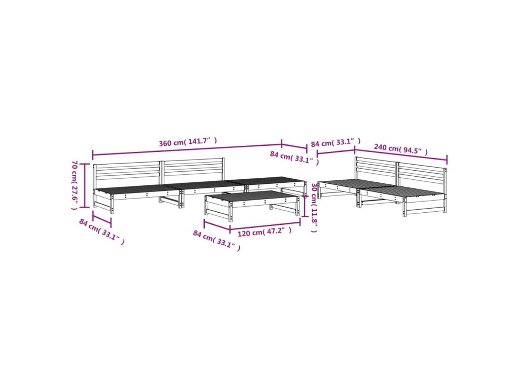 - Rozměry středové pohovky: 120 x 84 x 70 cm (D x Š x V)