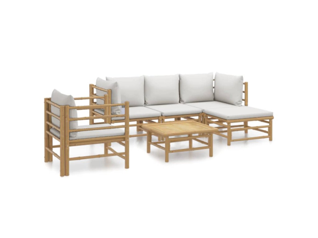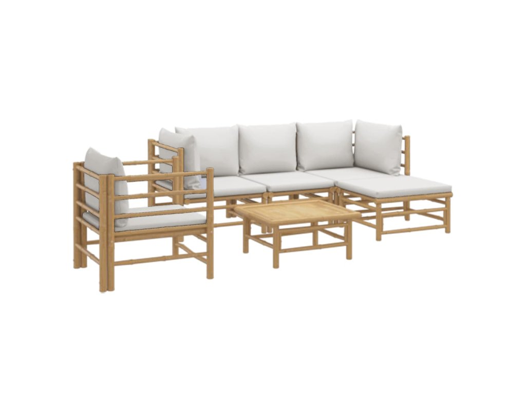 6dílná zahradní sedací souprava světle šedé podušky bambus 3155083