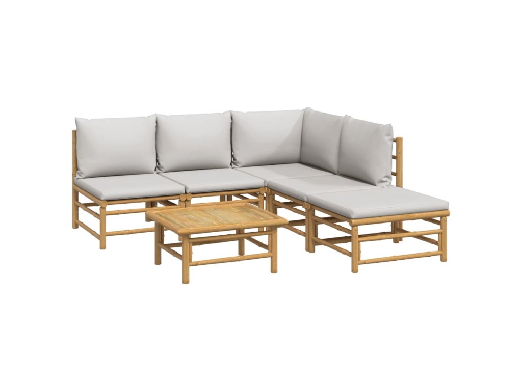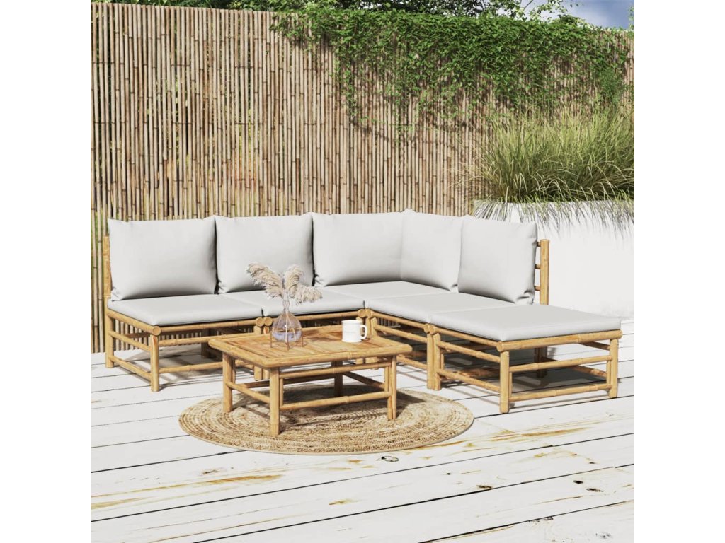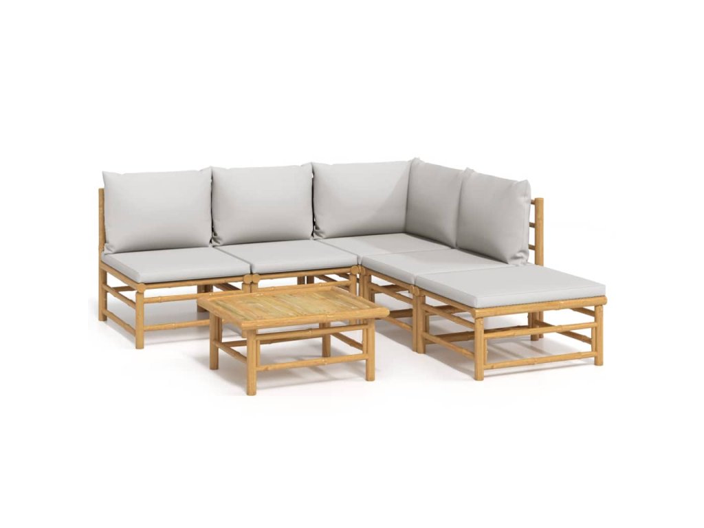 6dílná zahradní sedací souprava světle šedé podušky bambus 3155103
