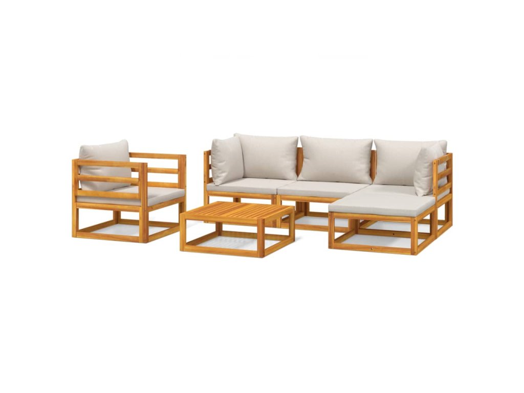 6dílná zahradní sedací souprava světle šedé podušky masiv 3155280