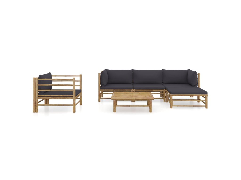6dílná zahradní sedací souprava + tmavě šedé podušky bambus 3058196