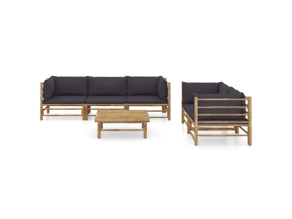 6dílná zahradní sedací souprava + tmavě šedé podušky bambus 3058210