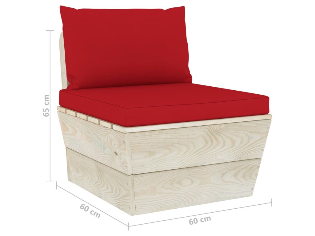 Zahradní sedací souprava je vyrobená z impregnovaného smrkového dřeva, takže je velice odolná a stabilní. Má pevnou konstrukci a nevyžaduje téměř žádnou údržbu. Stolek má robustní horní desku, je proto ideální k odkládání nápojů a občerstvení na dosah ruky. Podušky na palety mají hustě polstrované čalounění ze 100% polyesteru, jsou nesmírně měkké a zajistí vám maximální pohodlí. Zahradní pohovky mají modulární design, a tak je můžete přizpůsobit každému prostředí dle svých představ.