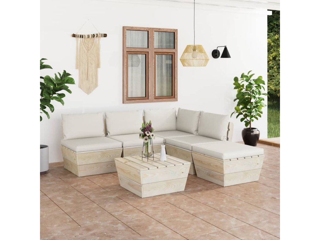 6dílná zahradní sedací souprava z palet + podušky smrkové dřevo 3063542
