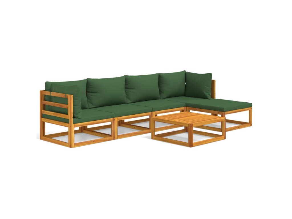 6dílná zahradní sedací souprava zelené podušky masivní dřevo 3155312