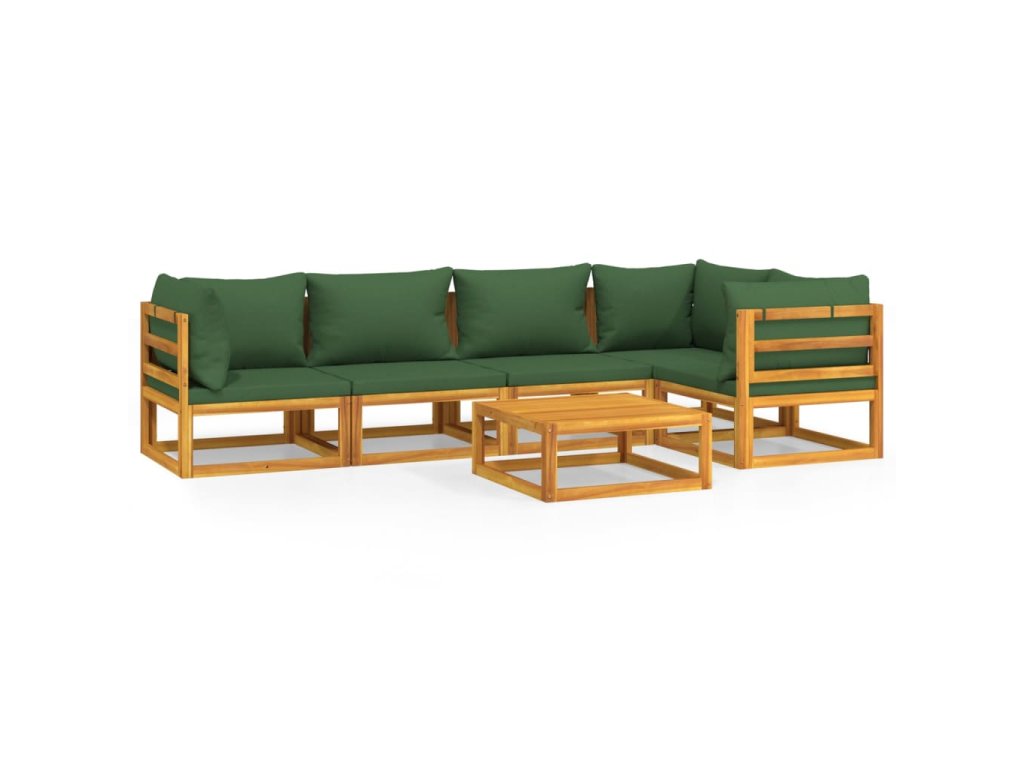 6dílná zahradní sedací souprava zelené podušky masivní dřevo 3155332
