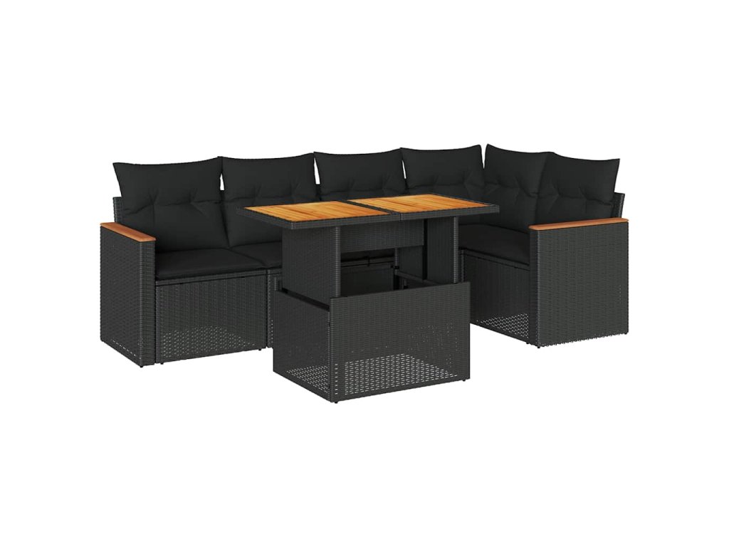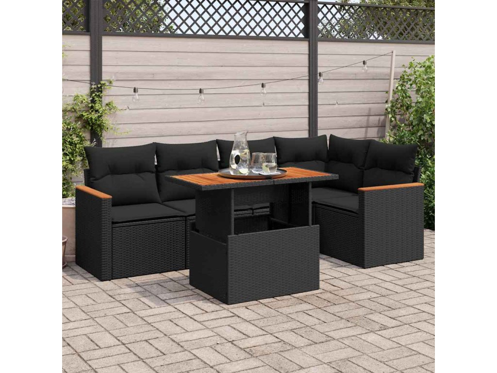 6dílná zahradní sestava s poduškami černá polyratan akácie 3327485