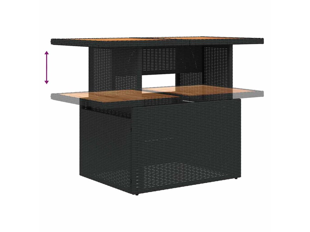 - Materiál: PE ratan, práškově lakovaná ocel, masivní akáciové dřevo s olejovou povrchovou úpravou