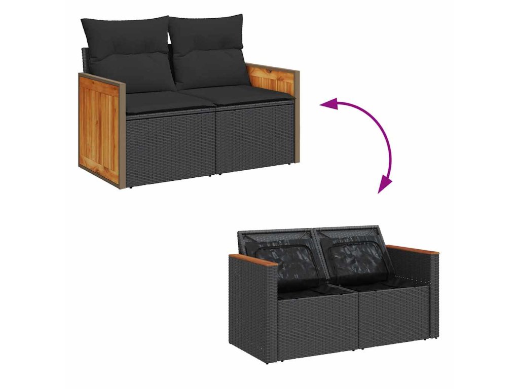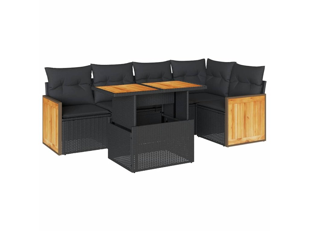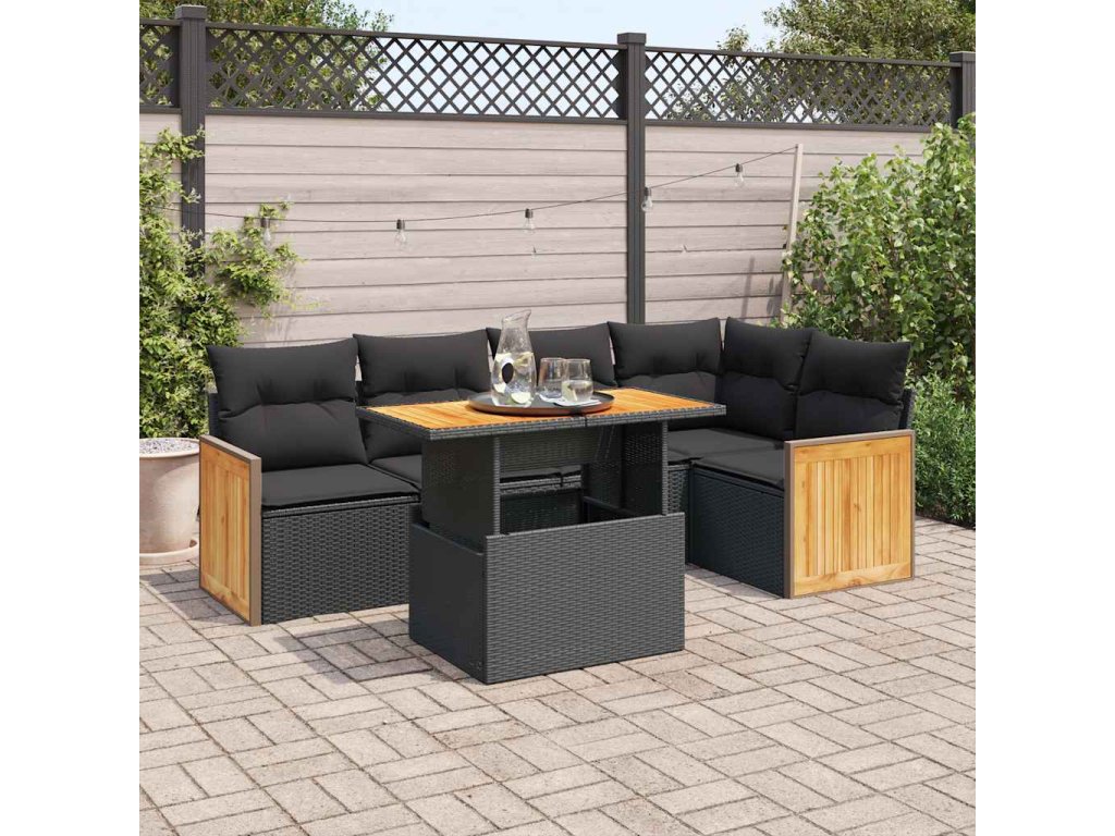 6dílná zahradní sestava s poduškami černá polyratan akácie 3327709