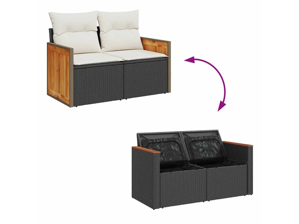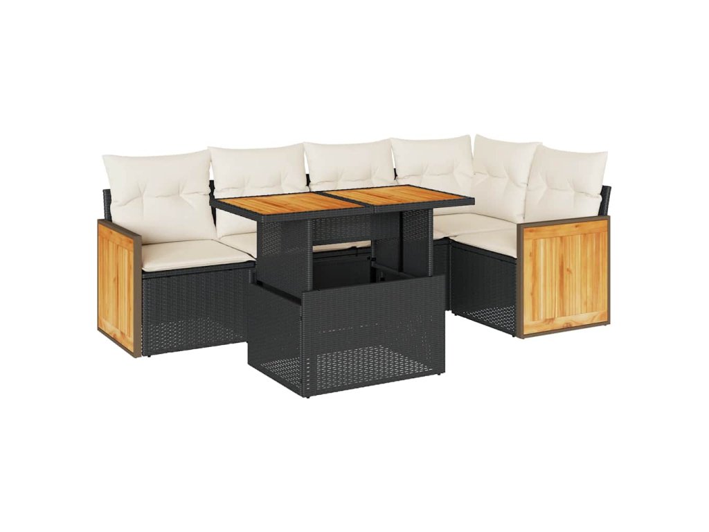 6dílná zahradní sestava s poduškami černá polyratan akácie 3327710