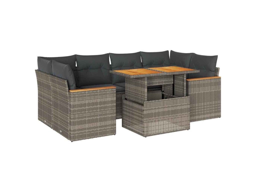 6dílná zahradní sestava s poduškami šedá polyratan akácie 3327455