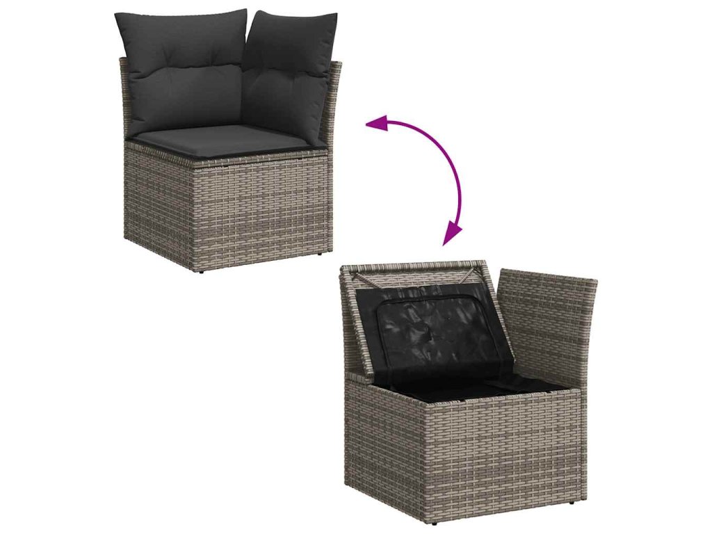 - 1x rohový sedací díl s ratanovou područkou včetně úložného prostoru s voděodolnou vložkou