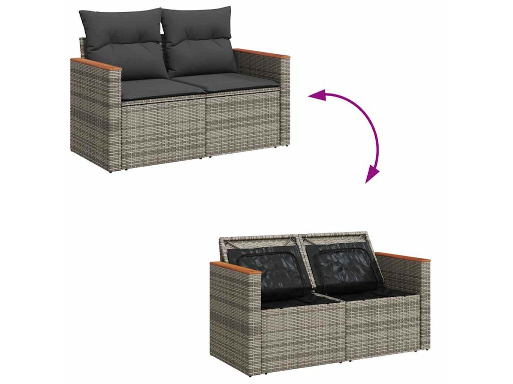 6dílná zahradní sestava s poduškami šedá polyratan akácie 3327476