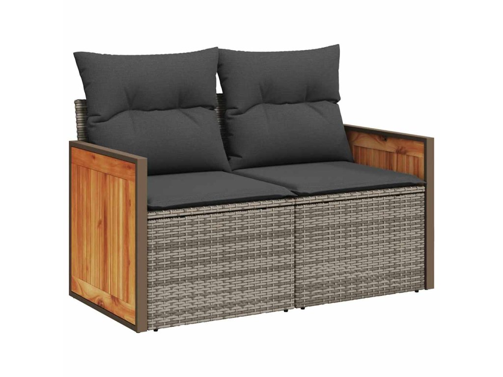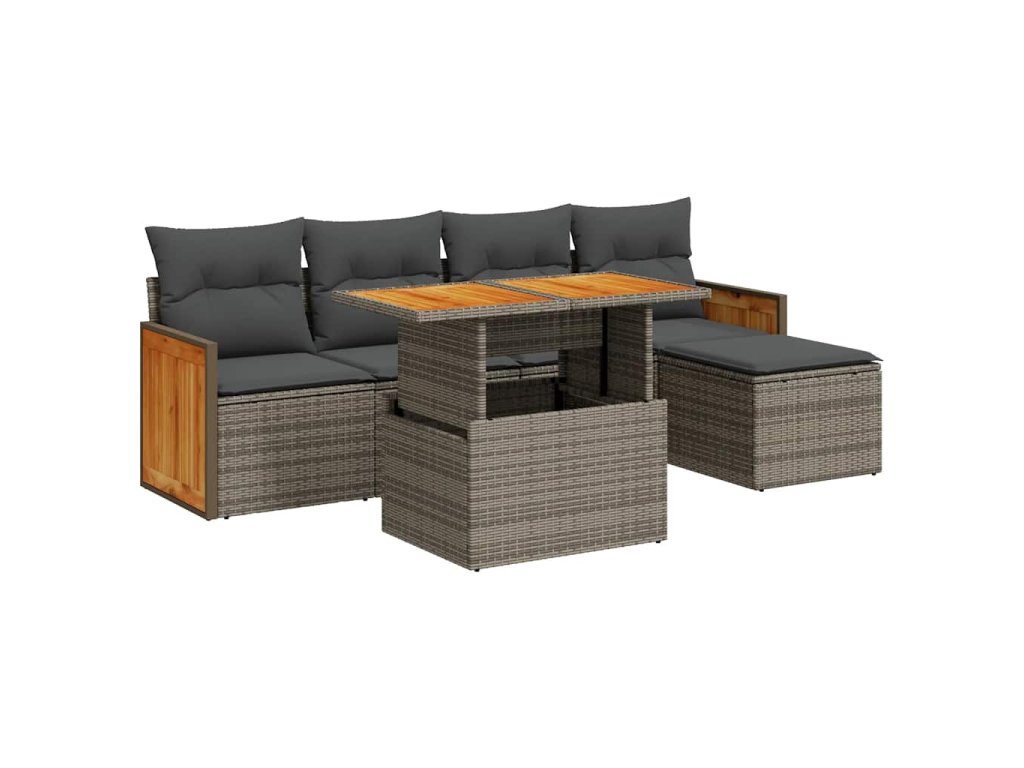 6dílná zahradní sestava s poduškami šedá polyratan akácie 3327700