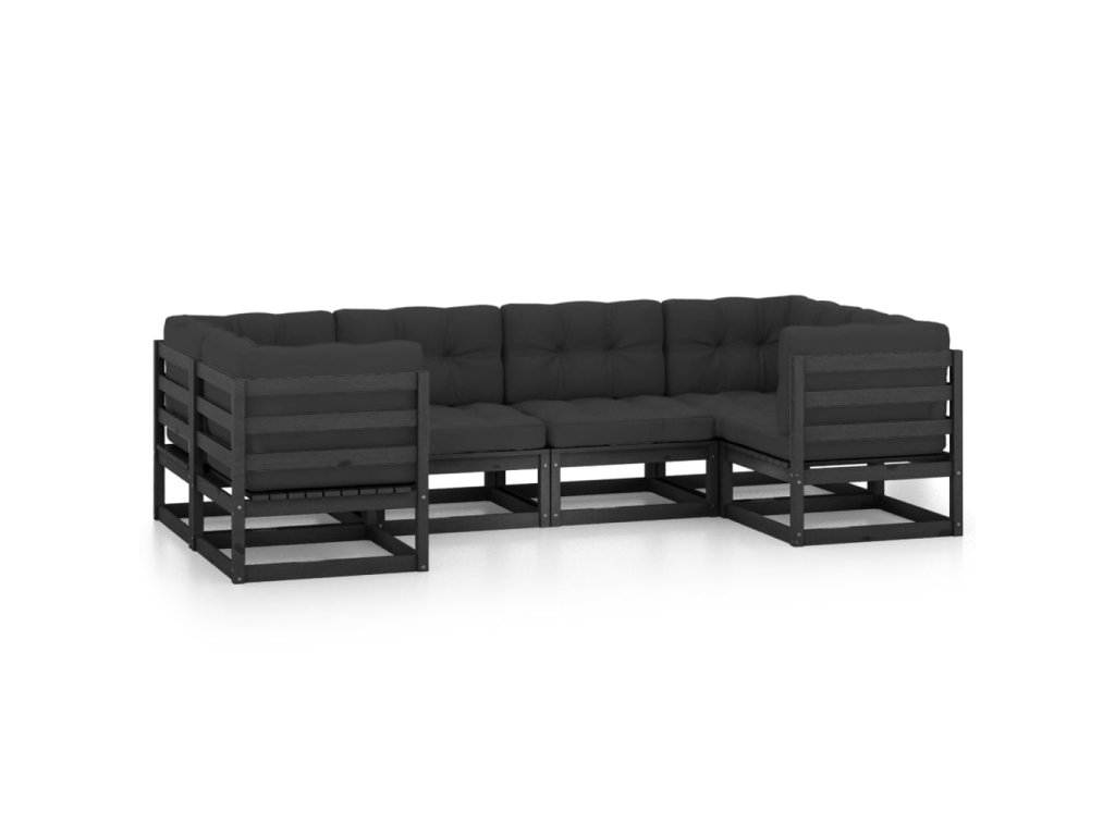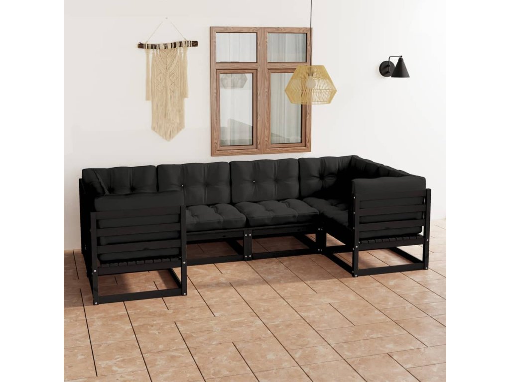 6dílná zahradní souprava s poduškami černá masivní borovice 3077298
