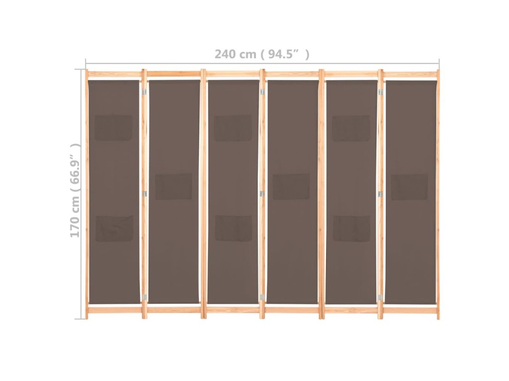 6dílný paraván hnědý 240 x 170 x 4 cm textil 248182