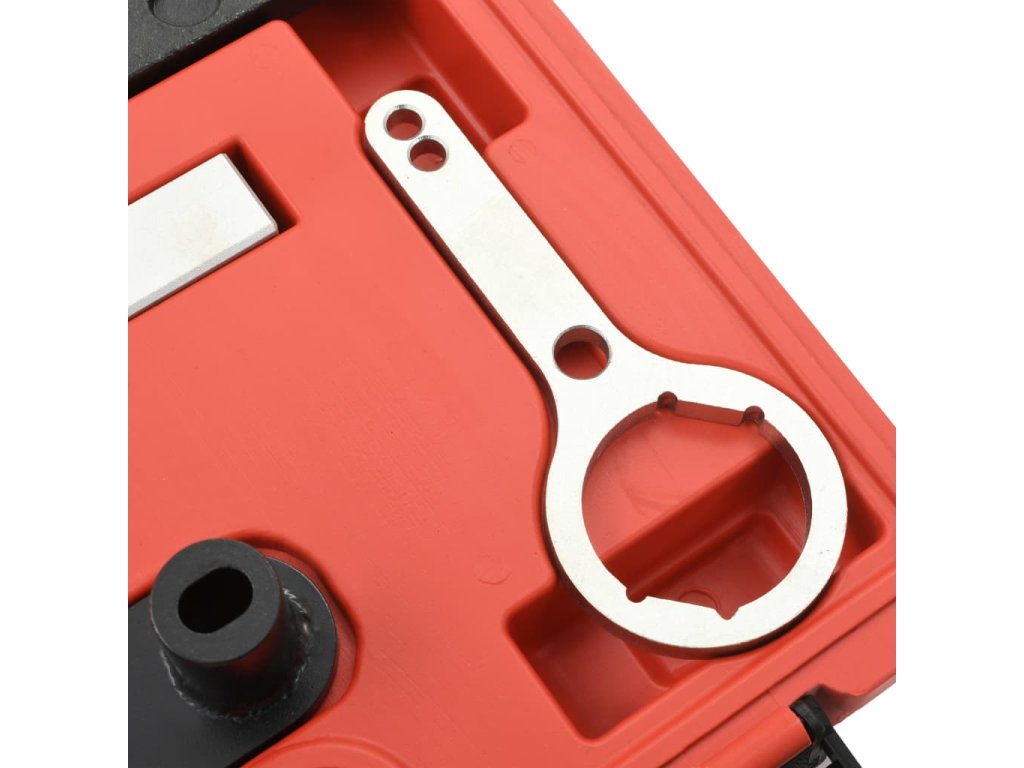 Tato sada nářadí pro časování je vyrobená z vysokopevnostní oceli, která jí dodává na odolnosti a výdrži. Všechny díly jsou uloženy v pouzdře z foukaného plastu pro snadné skladování a přepravu.