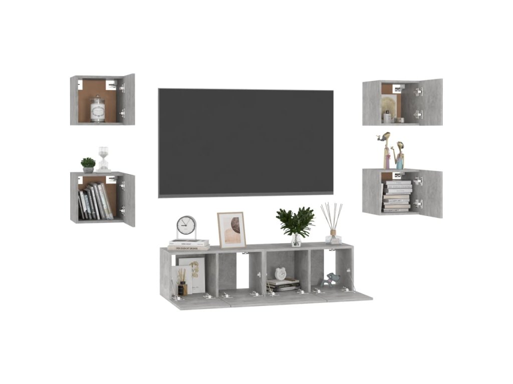 6dílný set TV skříněk betonově šedý kompozitní dřevo 3079080
