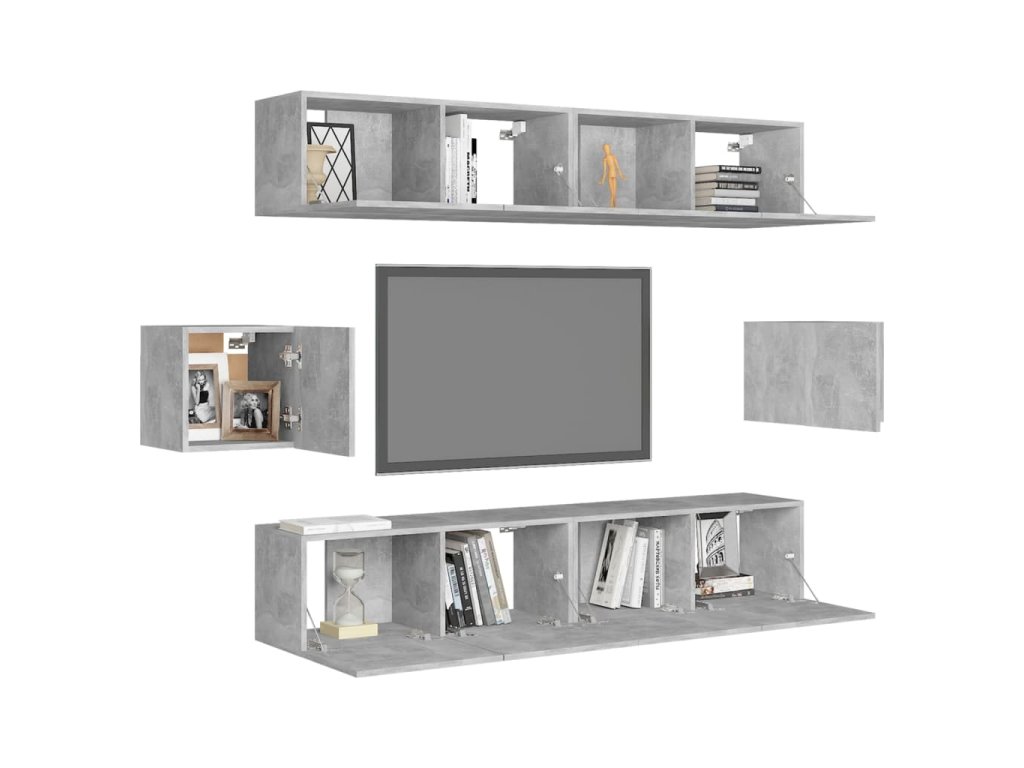 6dílný set TV skříněk betonově šedý kompozitní dřevo 3079103